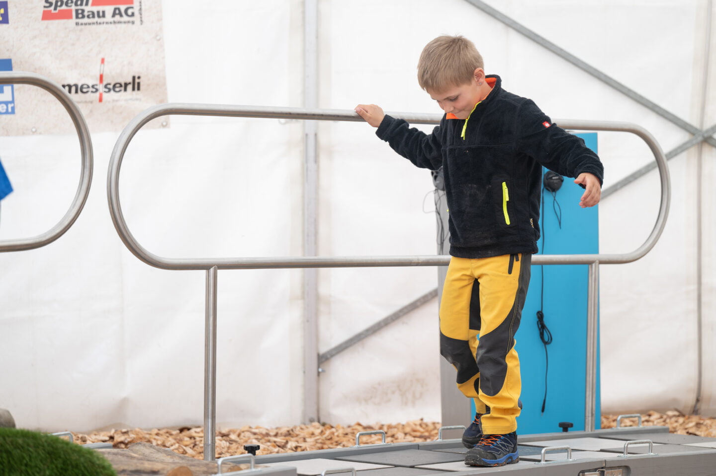Auf dem von der Suva zur Verfügung gestellten Sicherheitsparcours konnten die Besucher:innen hautnah erleben, wie wichtig die Sicherheit auf dem Bau ist. Die Leute schienen immer stärker wahrzunehmen, dass in der Baumeisterarena etwas läuft: Bereits am Nachmittag war die Baumeisterarena so gut besucht, dass der Bagger beim Baggerwettbewerb pausenlos im Einsatz stand.