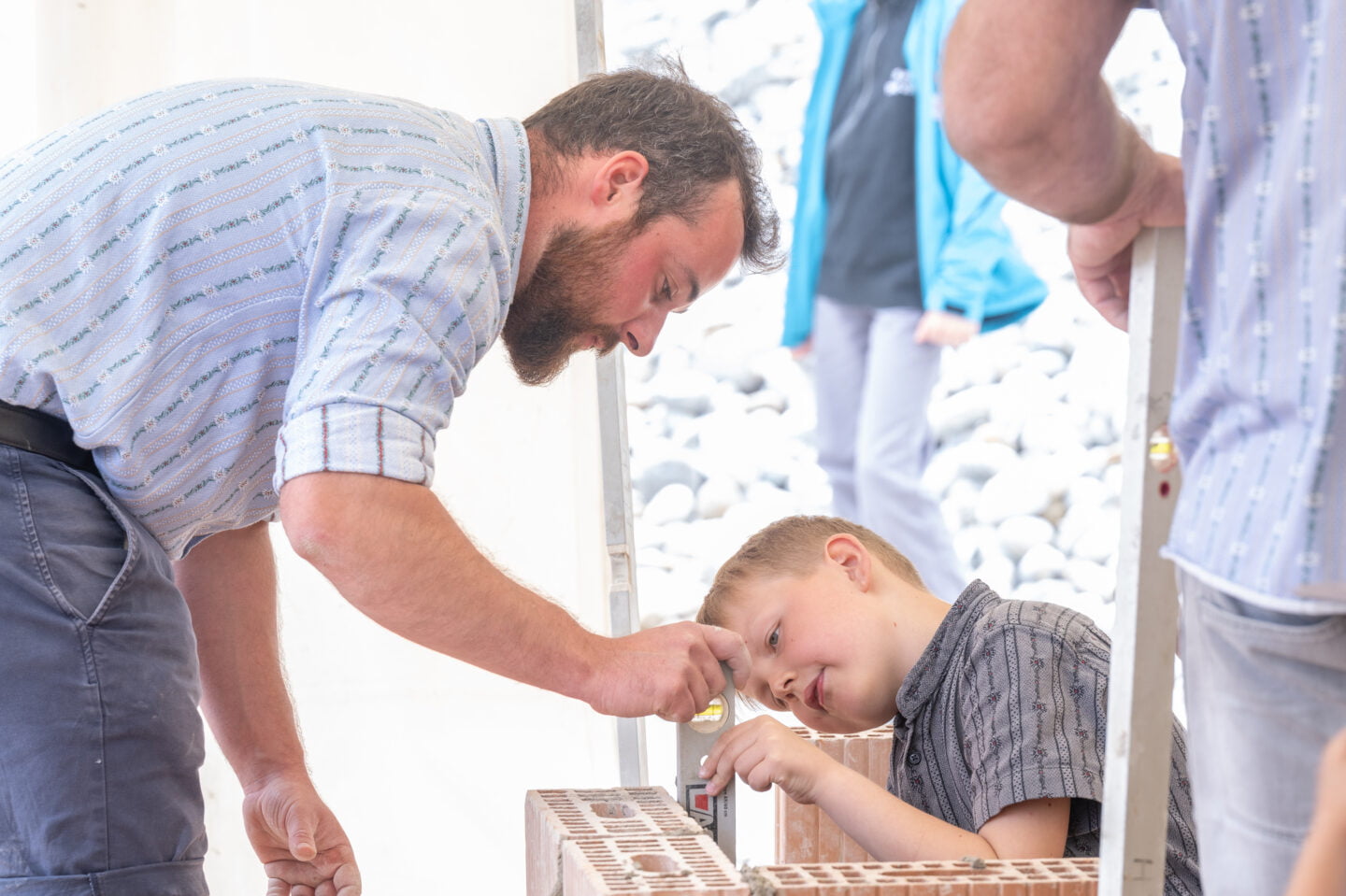 Entsprechend herrschte auch bei uns Hochbetrieb. Schwingerstar Matthias Aeschbacher und Maurer-Weltmeister Ben Zaugg trugen ihren Teil zum grossen Ansturm bei. Gemeinsam mit vier Lernenden und einem Maschinisten sorgten die beiden den ganzen Tag für viele Bauerlebnisse und zufriedene Gesichter. Was uns besonders freut: Wir konnten auch einige wertvolle Gespräche mit interessierten Jugendlichen im Berufswahlprozess führen.
